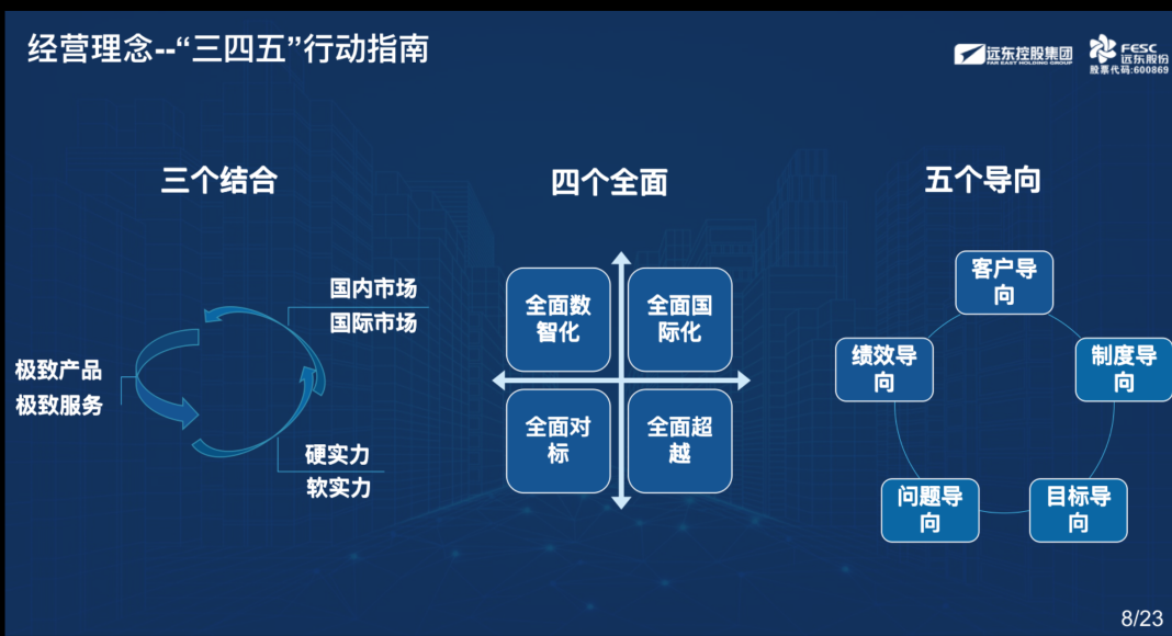 我今天借這個(gè)機(jī)會(huì)要分享的是遠(yuǎn)東如何創(chuàng)造價(jià)值,服務(wù)社會(huì),如何共建共享安全綠色美好生活。遠(yuǎn)東在過(guò)去的39年里,經(jīng)歷了從無(wú)到有、從小到大、從弱到強(qiáng)的歷程,歷經(jīng)風(fēng)雨,久經(jīng)考驗(yàn)。我們始終保持著對(duì)美好生活的向往,盡管當(dāng)前面臨百年未有之大變局,內(nèi)外挑戰(zhàn)接踵而至,但我們堅(jiān)信,艱難和挑戰(zhàn)都是暫時(shí)的。沒(méi)有哪個(gè)國(guó)家能夠連續(xù)高速成長(zhǎng)40多年而不經(jīng)歷深度調(diào)整,中國(guó)或許是個(gè)例外。但即使未來(lái)增長(zhǎng)放緩至3%、5%,只要是高質(zhì)量的增長(zhǎng),那也是非常了不起的成就。我們堅(jiān)信,未來(lái)的發(fā)展一定會(huì)更加注重質(zhì)量。